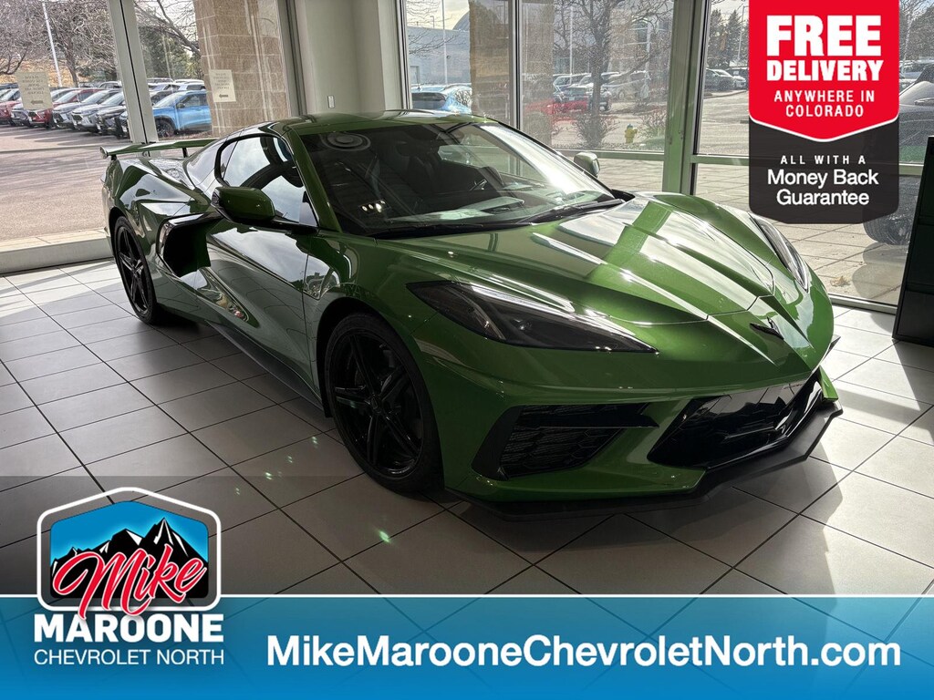 This New 2026 Chevrolet Corvette 2LT, is Roswell Green Metallic in color with an Jet Black interior. Stock Number N107809. You can connect with us by calling (719) 249-2703. Important Package and Feature Information Z51 Performance Package ($6,345 value)Z51 Performance SuspensionElectronic Limited-Slip DifferentialPerformance Rear Axle RatioZ51 Performance BrakesPerformance Exhaust with Stainless-Steel Tips245/35ZR19 Front and 305/30ZR20 Rear Blackwall TiresRear Z51 SpoilerHeavy-Duty Cooling SystemPreferred Equipment Group 2LTDriver Power Bolster Seat AdjusterPassenger Power Bolster Seat AdjusterPower Driver Lumbar Control Seat Adjuster2 Cargo NetsMemory Driver and Passenger Convenience PackagePower Passenger Lumbar Control Seat AdjusterPower-Adjustable Outside Heated MirrorsWireless Phone ChargingHeated Steering WheelHeated and Vented Driver and Passenger SeatsRear Cross Traffic AlertSide Blind Zone AlertUniversal Home RemoteBose Performance Series Sound System with 14 SpeakersPerformance Data and Video RecorderElectrical Theft Deterrent SystemVehicle Inclination Theft Deterrent SensorVehicle Interior Movement Theft Deterrent SensorHead-Up DisplayHD Front and Rear Vision CamerasStingray Protection Package ($1,195 value)Black Composite Rocker ExtensionsBlack Custom Splash GuardsFront Radiator Grille Screens Safety and Security Forward collision mitigation - Forward thinking. You look away for just a second and suddenly the vehicle in front of you has stopped. That's when the forward collision mitigation system comes to life. When it senses an impending impact, it will activate a combination of features to help prevent or reduce the severity of an accident. Forward collision mitigation is always looking ahead. Pedestrian impact prevention - An extra step toward safety. Pedestrians don't always stop, look, and listen, but with Pedestrian Impact Prevention, your vehicle is equipped to better see them and avoid them. This system constantly monitors the road ahead to identify and track pedestrians. It projects that image to an interior display screen, AND should an impact become likely, Pedestrian impact prevention takes steps to avoid a collision. Rear camera - Watching your back! The rear camera helps you see obstacles and hazards you otherwise couldn't by showing enhanced images of what is behind you. The rear camera is an extra set of eyes that's both convenient and safe. Lane departure prevention - Keep it between the lines. It only takes a moment of inattention for your vehicle to drift. With lane departure prevention, your vehicle takes corrective action to help you avoid unintentionally moving out of your lane. Lane departure prevention is an extra level of safety for you and those around you.Technology and Telematics Mobile hotspot - WiFi on the fly. Connect your devices to the Internet through your vehicles private mobile hotspot and take the internet wherever your journey takes you, without eating up your data allowance. Find the hotspot with mobile hotspot. ENGINE, 6.2L V8 DI, HIGH-OUTPUT, ROSWELL GREEN METALLIC FINANCING OPTIONS: Take advantage of our attractive low-rate financing options. Our access to various Credit Unions and National Banks can provide financing for most credit levels. We can tailor a finance package to fit your needs. To get started, complete our secure online credit application. FREE DELIVERY ANYWHERE IN COLORADO. Our dealerships sell more Chevrolets than any single dealership in the state. We have the largest Chevy inventory of Trax and highest customer satisfaction. At Mike Maroone, if you dont like it ... Bring it back! For more information or vehicles like it, stop by Mike Maroone North today. We are just north of the Chapel Hills mall behind Walmart in the Chapel Hills Auto Mall.