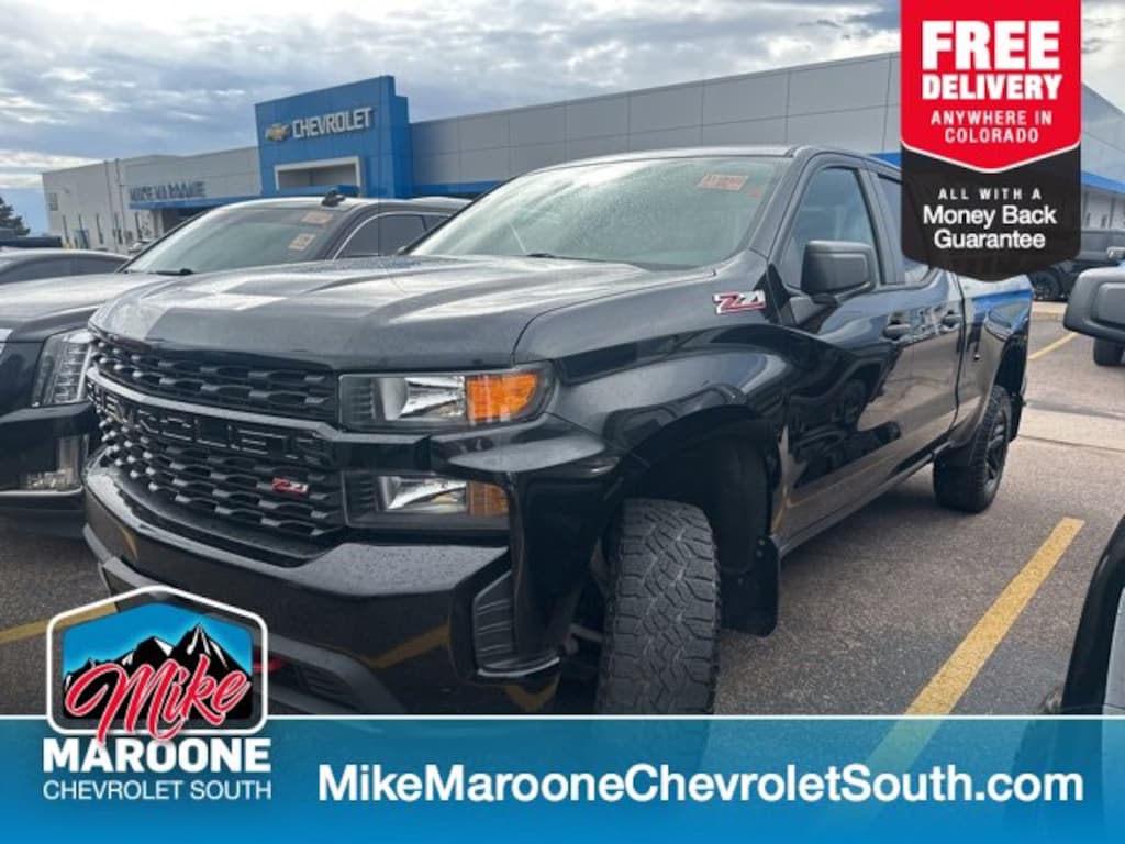 COME SEE THIS BEAUTIFUL 2020 Chevrolet Silverado 1500 Custom Trail Boss AT MIKE MAROONE CHEVROLET SOUTH 230 N ACADEMY BLVD COLORADO SPRINGS CO, 3 DAY 150 MILE MONEY BACK GUARANTEE**, FREE DELIVERY ANYWHERE IN COLORADO**, 60 DAY POWERTRAIN WARRANTY**, 1 FREE MONTH ONSTAR (IF EQUIPPED)**, 3 FREE MONTHS XM RADIO (IF EQUIPPED)**, 4 WHEEL DRIVE**, 5.3L V8 ENGINE**, 8 COLOR TOUCHSCREEN**, APPLE CARPLAY**, ANDROID AUTO**, AIR CONDITIONING**, ALLOY WHEELS**, BLUETOOTH - HANDS FREE**, FRESH OIL & FILTER CHANGE**, FRONT & REAR BRAKES**, MP3- USB- AUX PORT**, PASSIVE ENTRY SYSTEM**, KEYLESS OPEN**, KEYLESS START**, KEYLESS ENTRY**, POWER HEATED OUTSIDE MIRRORS**, CRUISE CONTROL**, POWER WINDOWS**, POWER LOCKS**, POWER SEAT**, REAR BACK UP CAMERA**, REAR CROSS TRAFFIC ALERT**, REMOTE VEHICLE START**, RUNNING BOARDS**, SERVICE RECORDS AVAILABLE**, STEERING WHEEL AUDIO CONTROLS**, TOW PACKAGE**, TRAILERING EQUIPMENT**, BEDLINER**. 4WD Certification Program Details: This 2020 Chevrolet Silverado 1500 Custom Trail Boss also comes with the FULL Mike Maroone 60-Day warranty. We will review the technician's vehicle inspection report with you before purchase. Our intention is to provide you a completely transparent buying experience. At Mike Maroone our used vehicles are Safety Checked, Warrantied, CARFAX, and if you don't like it ... Bring it back! All of our new and used vehicles come with the Mike Maroone Preferred Owner Advantages listed below: - MARKET BASED PRICING - 3 DAY/150 MILE MONEY BACK GUARANTEE - FREE LOANERS FOR SERVICE GUESTS WHO SET AN ONLINE APPOINTMENT - 12 MONTH/12K MILE SERVICE/COLLISION GUARANTEE - 60 DAY LIMITED POWERTRAIN PRE-OWNED VEHICLE WARRANTY - MILITARY DEPLOYMENT BUYBACK GUARANTEE - FREE DELIVERY ANYWHERE IN COLORADO For more information or vehicles like it, stop by Mike Maroone South today. We are just south of the Citadel Mall on the corner of Academy and Bijou.