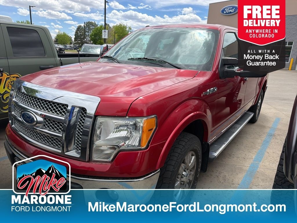 Clean CARFAX. FREE DELIVERY ANYWHERE IN COLORADO, 5.4L Triton V8 engine, 6-speed automatic transmission, 4x4 drivetrain, Lariat trim, SuperCrew cab, FX4 Off-Road Package, electronic shift-on-the-fly transfer case, limited-slip rear axle, trailer tow package, skid plates, hill descent control, chrome grille, chrome bumpers, chrome clad wheels, fog lamps, running boards, power sliding rear window, power-adjustable pedals, leather-trimmed bucket seats, heated front seats, driver memory seat, dual-zone automatic climate control, SYNC voice-activated system, AM/FM stereo with CD/MP3 player, satellite radio, reverse sensing system, rearview camera, universal garage door opener, keyless entry, remote start, cruise control, tilt and telescoping steering wheel, power windows and locks. Odometer is 93401 miles below market average! Red 2010 Ford F-150 4D SuperCrew 5.4L V8 EFI 24V FFV 6-Speed Automatic Electronic 4WD