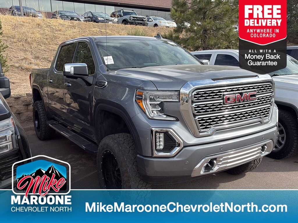 This 2021 GMC Sierra 1500 Denali, has a Satin Steel Metallic exterior and Jet Black interior color with only 53,981 miles. Stock Number PN415819. You can connect with us by calling (719) 249-2703. No Accidents! Driver Alert Package IUltrasonic Front and Rear Park AssistRear Cross Traffic AlertLane Change Alert with Side Blind Zone AlertPreferred Equipment Group 5SAPower Sliding Rear Window with Rear DefoggerGMC Connected Access CapablePower Front Passenger Windows with Express Up/downPower Rear Windows with Express DownDeep-Tinted GlassKeyless Open and StartPower Door LocksPower Front Windows with Driver Express Up/downRear Wheelhouse LinersColor-Keyed Carpeting Floor CoveringRemote Vehicle Starter SystemChrome Wheel to Wheel Assist StepsElectric Rear-Window DefoggerSpray-On Pickup Bed Liner with Denali LogoCompassFloor-Mounted Center ConsoleAuto-Locking Rear DifferentialSignature Denali GrilleSafety Alert SeatPremium GMC Infotainment System Radio with NavigationHill Descent ControlIntegrated Trailer Brake ControllerHeavy-Duty Air FilterWireless ChargingHeated Driver and Front Outboard Passenger Seating120-Volt Instrument Panel Power OutletAuxiliary External Transmission Oil Cooler12-Volt Rear Auxiliary Power OutletVentilated Driver and Front Passenger Seats170 Amp Alternator5.3L EcoTec3 V8 Engine2 USB Ports2 USB Ports (1st Row)Electrical Lock Control Steering ColumnManual Tilt-Wheel and Telescoping Steering Column2-Speed Transfer CaseDriver Alert Package IProGrade Trailering System275/60R20SL AT BW Tires20" X 9" Multi-Dimensional Polished Aluminum WheelsOnStar and GMC Connected Services CapableLED Cargo Area LightingUniversal Home RemoteSteering Wheel Audio ControlsRear Dual USB Charging-Only PortsTheft Deterrent System (unauthorized Entry)HD Rear Vision CameraChrome Recovery Hooks4G LTE Wi-Fi Hotspot CapableAdaptive Ride Control SuspensionTrailering Package Technology and Telematics Without the need for a manufacturer specific app to be installed on the smart device, the vehicle infotainment system can access and control functions of a smart device physically plugged-into the vehicle. Android Auto/Apple CarPlay smart device wireless mirroring Apple CarPlay/Android Auto smart device wireless mirroring Mobile devices can wirelessly connect to the internet through the vehicle's private mobile network. Mobile devices can wirelessly connect to the internet through the vehicle's private mobile network. At Mike Maroone Chevrolet North, were here to Serve you! Our staff is 100% dedicated to customer satisfaction and we understand that you need clear, transparent information throughout the car buying process. With our live market pricing philosophy, we offer the right cars at the right price, and the transparency to back it up! FINANCING OPTIONS: Take advantage of our attractive low-rate financing options. Our access to various Credit Unions and National Banks can provide financing for most credit levels. We can tailor a finance package to fit your needs. To get started, complete our secure online credit application. We will review our technicians vehicle inspection report with you before purchase. Our intention is to provide you a completely transparent buying experience. At Mike Maroone our used vehicles are Safety Checked, Warrantied, CarFax, and if you dont like it ... Bring it back! For more information or vehicles like it, stop by Mike Maroone North today. We are just north of the Chapel Hills mall behind Walmart in the Chapel Hills Auto Mall.