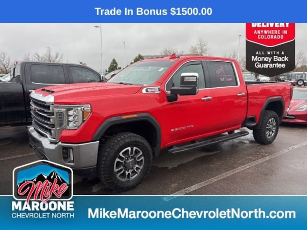 Recent Arrival! 2021 GMC Sierra 3500HD SLT 4D Crew Cab FREE DELIVERY ANYWHERE IN COLORADO **, PREMIUM SOUND **, 4 WHEEL DRIVE. Duramax 6.6L V8 Turbodiesel 10-Speed Automatic 4WDThis Sierra 3500HD comes with the FULL Mike Maroone a 60-Day 3000 Mileage Powertrain Warranty. We will review our technicianâs vehicle inspection report with you before purchase. Our intention is to provide you a completely transparent buying experience. At Mike Maroone our used vehicles are Safety Checked, Warrantied, CarFax, and if you donât like it ... Bring it back! For more information or vehicles like it, stop by Mike Maroone North today. We are just north of the Chapel Hills mall behind Walmart in the Chapel Hills Auto Mall.