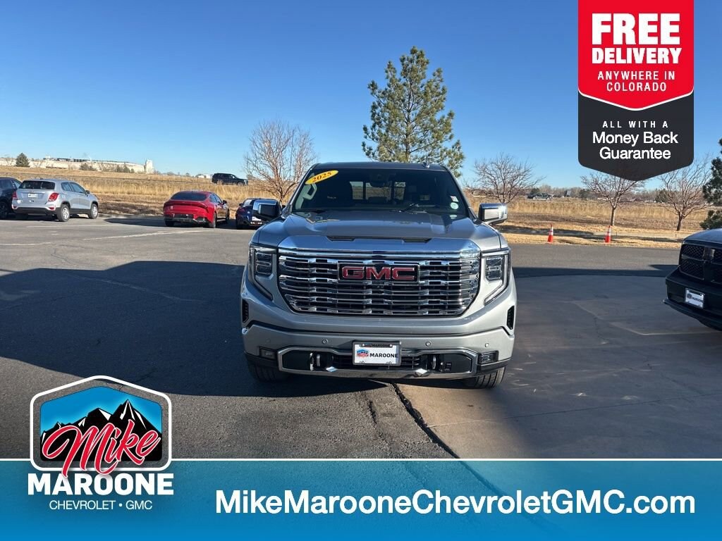Clean CARFAX. CARFAX One-Owner. Sterling Metallic 2025 GMC Sierra 1500 Denali 4WD 10-Speed Automatic 3.0L I6 FREE DELIVERY ANYWHERE IN COLORADO, NAVIGATION, 4 WHEEL DRIVE, HEATED FRONT SEATS, HEATED STEERING WHEEL, POWER SEATS, LOCAL TRADE IN, COME TEST DRIVE!, SET YOUR TEST DRIVE APPOINTMENT TODAY, 10-Speed Automatic, 4WD, Jet Black Leather.