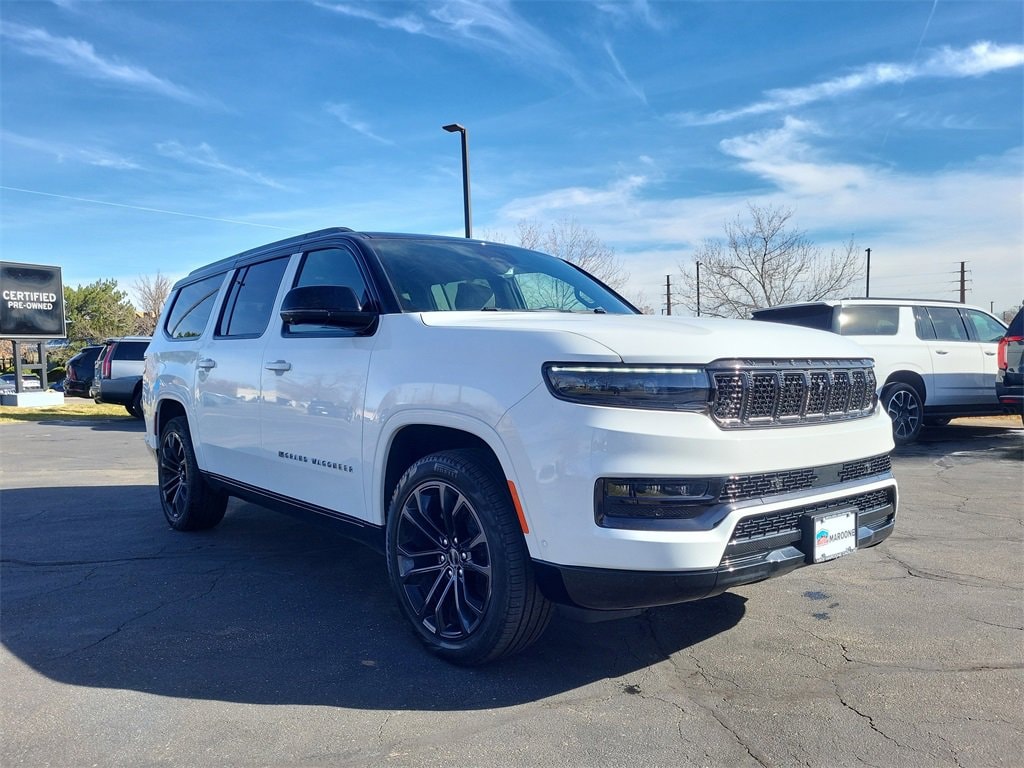 Obsidian 19 Speakers, 23 Speaker McIntosh Reference Audio System, 3rd row seats: bench, ABS brakes, Adjustable Roof Rail Crossbars, Air Conditioning, AM/FM radio: SiriusXM with 360L, Anti-whiplash front head restraints, Apple CarPlay/Android Auto, Auto High-beam Headlights, Auto-leveling suspension, Automatic temperature control, Black Interior Accents, Black Roof, Delay-off headlights, Dual front impact airbags, Dual front side impact airbags, Electronic Stability Control, Four wheel independent suspension, Front Console Cooler, Front dual zone A/C, Front Passenger Interactive Display, Fully automatic headlights, Gloss Black Upper & Lower DLO Molding, Heads-Up Display, Heated door mirrors, Heated front seats, Knee airbag, Leather Trimmed Bucket Seats, Memory seat, Navigation System, Normal Duty Suspension, Obsidian Appearance Package, Occupant sensing airbag, Outside temperature display, Overhead airbag, Passenger vanity mirror, Pedal memory, Piano Black Exterior Accents, Power adjustable front head restraints, Power driver seat, Power Liftgate, Power moonroof, Power windows, Quick Order Package 28T Obsidian, Radio: Uconnect 5 Nav w/12.0 Display, Rain sensing wipers, Rear dual zone A/C, Rear reading lights, Rear window wiper, Rearview Autodim Digital Display Mirror, Remote keyless entry, Split folding rear seat, Steering wheel memory, Steering wheel mounted audio controls, Traction control, Turn signal indicator mirrors, Two Tone Paint Group, Variably intermittent wipers, Ventilated front seats, Ventilated Rear Seats, Wheels: 22 x 9.0 Tinted Polished w/Black Insert.