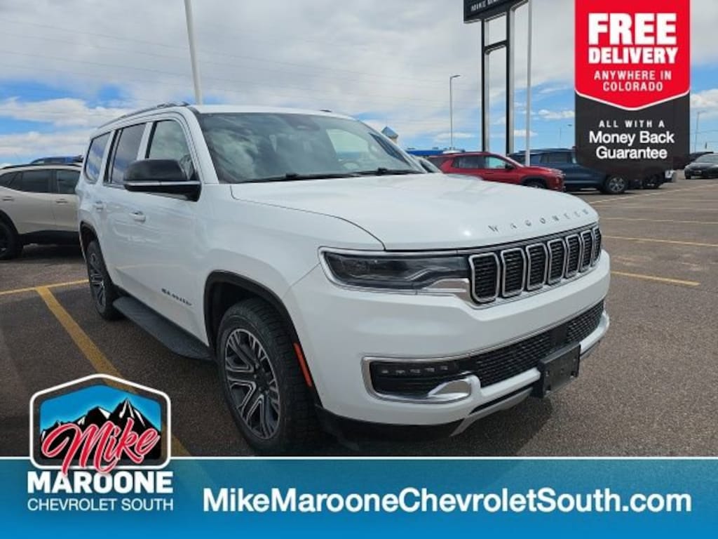 COME SEE THIS BEAUTIFUL 2024 Jeep Wagoneer AT MIKE MAROONE CHEVROLET SOUTH 230 N ACADEMY BLVD COLORADO SPRINGS CO, 3 DAY 150 MILE MONEY BACK GUARANTEE**, FREE DELIVERY ANYWHERE IN COLORADO**, 60 DAY POWERTRAIN WARRANTY**, 3RD ROW SEATING**, 4 WHEEL DRIVE**, APPLE CARPLAY**, ANDROID AUTO**, AIR CONDITIONING**, ALLOY WHEELS**, BLUETOOTH - HANDS FREE**, FRESH OIL & FILTER CHANGE**, HEATED 2ND ROW SEATS**, HEATED AND VENTILATED SEATS**, HEATED STEERING WHEEL**, LEATHER SEATS**, KEYLESS OPEN**, KEYLESS START**, KEYLESS ENTRY**, POWER ADJUSTABLE PEDALS**, CRUISE CONTROL**, POWER WINDOWS**, POWER LOCKS**, POWER REAR LIFTGATE**, POWER SEAT**, REAR BACK UP CAMERA**. 4WD Certification Program Details: This 2024 Jeep Wagoneer also comes with the FULL Mike Maroone 60-Day warranty. We will review the technician's vehicle inspection report with you before purchase. Our intention is to provide you a completely transparent buying experience. At Mike Maroone our used vehicles are Safety Checked, Warrantied, CARFAX, and if you don't like it ... Bring it back! All of our new and used vehicles come with the Mike Maroone Preferred Owner Advantages listed below: - MARKET BASED PRICING - 3 DAY/150 MILE MONEY BACK GUARANTEE - FREE LOANERS FOR SERVICE GUESTS WHO SET AN ONLINE APPOINTMENT - 12 MONTH/12K MILE SERVICE/COLLISION GUARANTEE - 60 DAY LIMITED POWERTRAIN PRE-OWNED VEHICLE WARRANTY - MILITARY DEPLOYMENT BUYBACK GUARANTEE - FREE DELIVERY ANYWHERE IN COLORADO For more information or vehicles like it, stop by Mike Maroone South today. We are just south of the Citadel Mall on the corner of Academy and Bijou.
