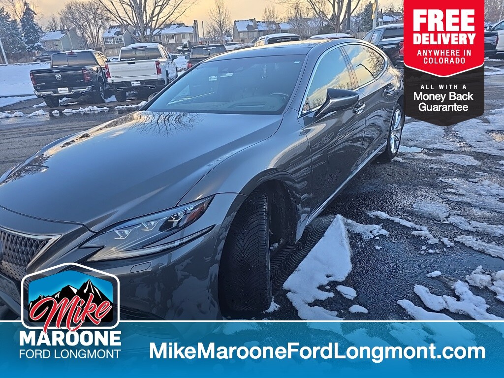 Recent Arrival at Mike Maroone Ford! FREE DELIVERY ANYWHERE IN COLORADO, ALL WHEEL DRIVE, NAVIGATION, REMOTE START, PANORAMIC MOONROOF, LEATHER SEATING, HEATED SEATS, COOLED SEATS, KEYLESS IGNITION, POWER SEATS, Trim: F SPORT Exterior: Manganese Luster Interior: Black, 1K2 Manganese Luster FK F Sport Package DTRIM1 Aluminum Door Trim HLINER Ultra Suede Headliner BRAKES 6-Piston Front Brake Calipers STDST F Sport Heated/Cooled Front Bucket Seats STDEN 3.5L V6 DOHC 24-Valve Twin Turbo Engine STDTN 10-Speed Automatic Transmission STDRT P245/45R20 Front and P275/40R20 Rear AS Tires FX 20" Dark Graphite Split 5-Spoke Alloy Wheels LF F Sport Leather Seat Trim STDRD Pioneer DVD Audio System with Navigation PC Premium Paint 26 Black. Gray 2018 Lexus LS 500 Base 4D Sedan 3.5L V6 DOHC 24V 10-Speed Automatic AWD