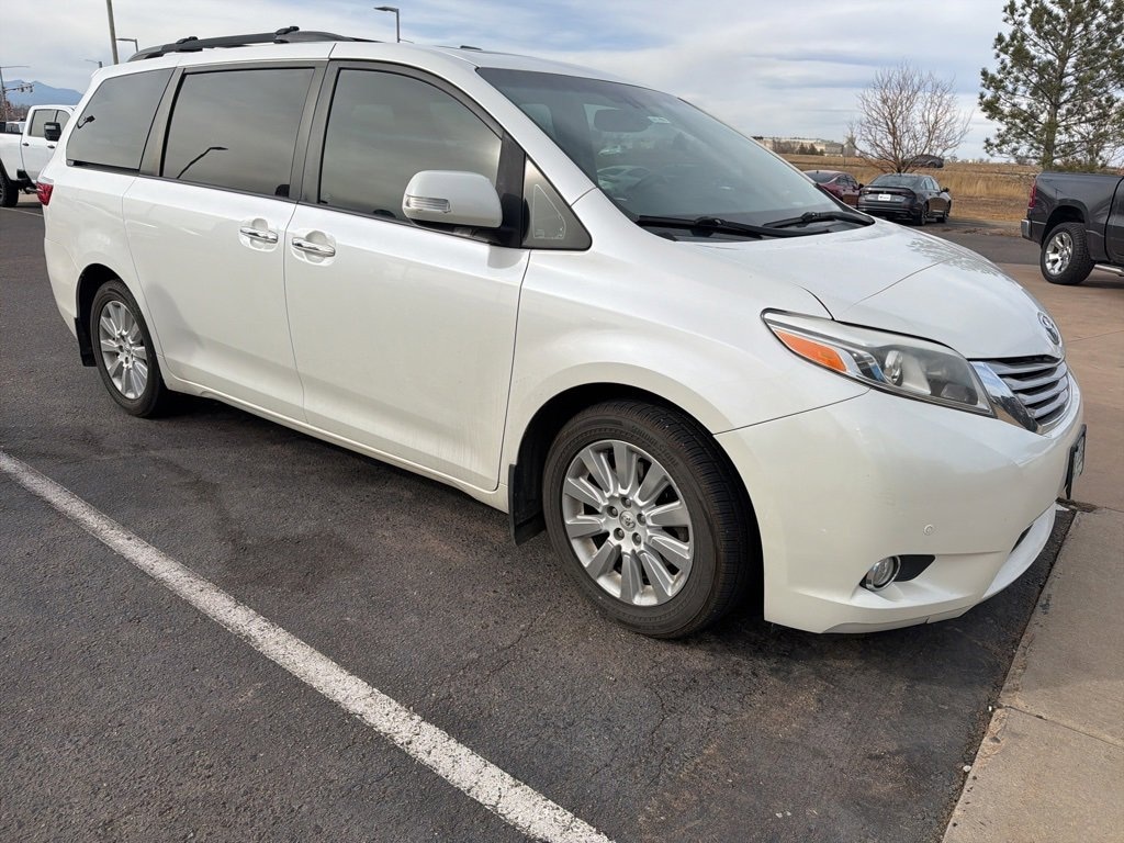 CARFAX One-Owner. White 2015 Toyota Sienna Limited Premium 7 Passenger AWD 6-Speed Automatic Electronic with Overdrive 3.5L V6 SMPI DOHC FREE DELIVERY ANYWHERE IN COLORADO, NAVIGATION, ALL WHEEL DRIVE, LEATHER SEATS, HEATED FRONT SEATS, LOCAL TRADE IN, RARE FIND!!!, PRICED TO SELL!!!, COME TEST DRIVE!, SET YOUR TEST DRIVE APPOINTMENT TODAY, AWD, 18 x 7 10-Spoke Machine Finish Alloy Wheels, ABS brakes, Alloy wheels, Auto-dimming door mirrors, Bumpers: body-color, Compass, Electronic Stability Control, Front dual zone A/C, Heated door mirrors, Heated Front Bucket Seats, Heated front seats, Illuminated entry, Leather Seat Material, Low tire pressure warning, Navigation System, Power 2nd-Row Moonroof, Power door mirrors, Power Liftgate, Power moonroof, Remote keyless entry, Roof rack: rails only, Spoiler, Traction control, Turn signal indicator mirrors.