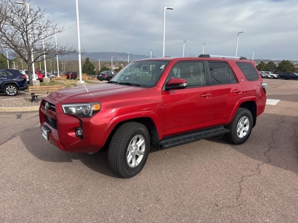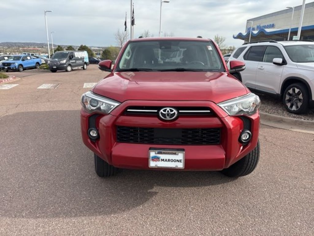 This 2021 Toyota 4Runner SR5 Premium 4WD features a rugged 4.0L V6 engine, 5-speed automatic transmission, and part-time 4WD with Active TRAC. Finished in Barcelona Red Metallic over a SofTex-trimmed interior, this SUV is equipped with the Premium Audio package, Dynamic Navigation, and Toyota Safety Sense P. It offers a perfect blend of off-road capability and modern convenience, boasting a 4-star NHTSA safety rating and a clean Japanese-assembled pedigree.
